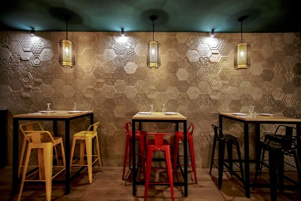 As paredes adornadas criam um cenário hipnotizante que serve de moldura para uma experiência gastronómica de luxo. Na The Creative @ Co, criámos mais do que um restaurante; desenvolvemos um ambiente onde a funcionalidade moderna se funde perfeitamente com a rica tapeçaria histórica da Ásia.