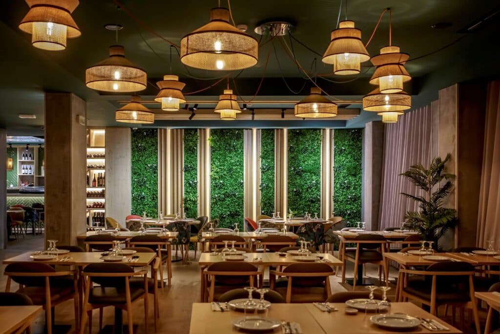 • Madeira Maciça: Utilizada em mobiliário de cor natural, proporciona uma base sólida e distinta que suporta toda a operação do restaurante.